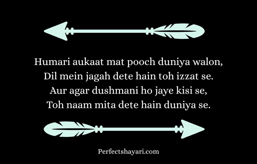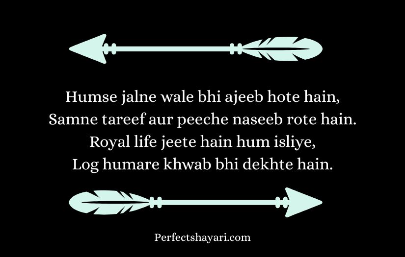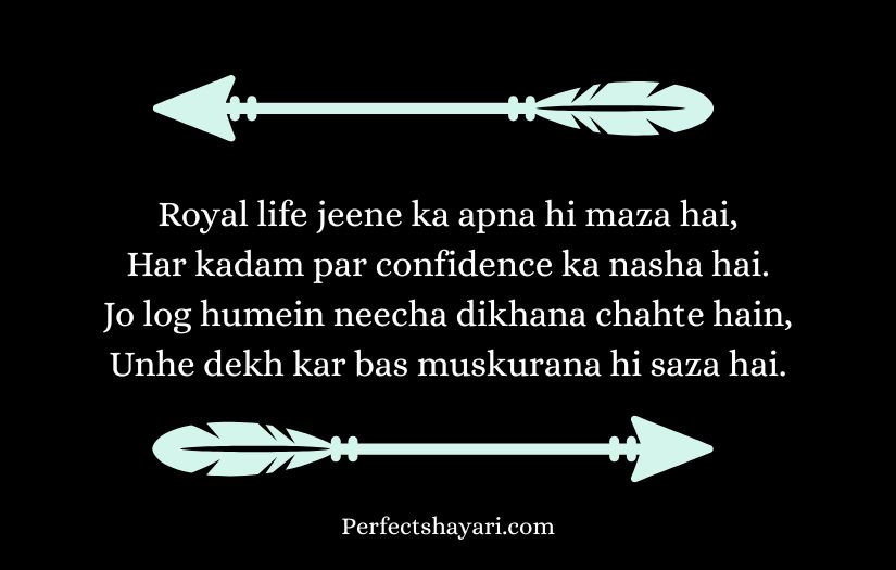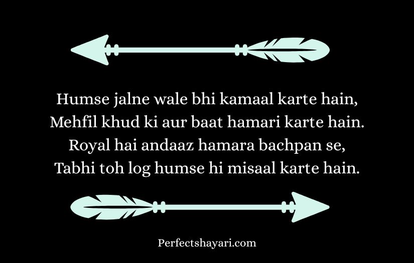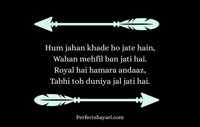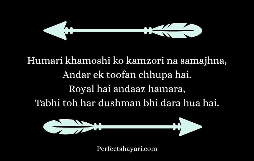 This type of shayari is popular among people who enjoy showing their strong attitude and unique style. It often includes powerful words that convey determination, fearlessness, and a belief in one’s own worth. Through short yet impactful lines, royal attitude shayari creates a sense of authority and self-confidence.